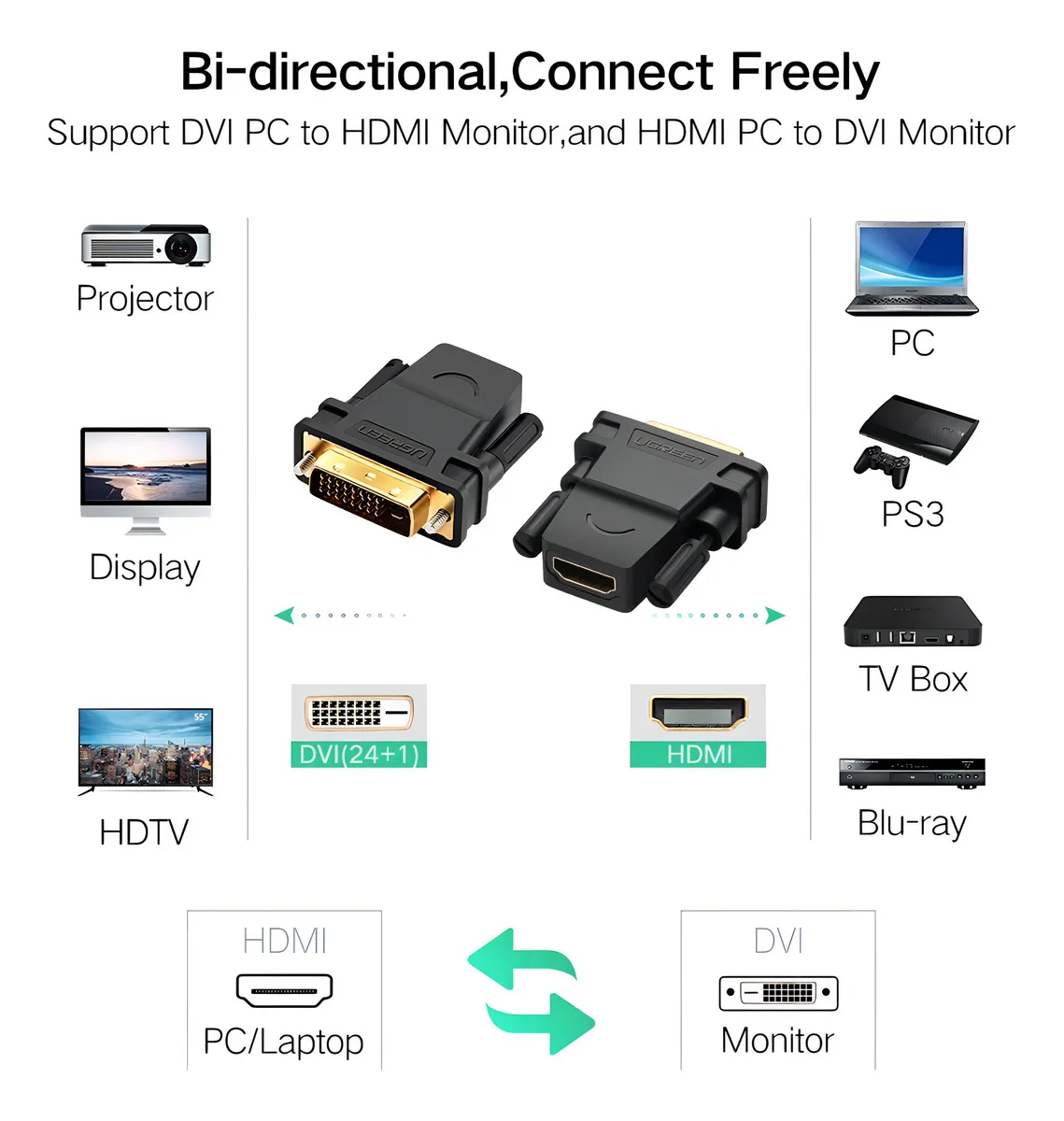 ADAPTADOR DVI 24+1 MACHO A HDMI HEMBRA UGREEN