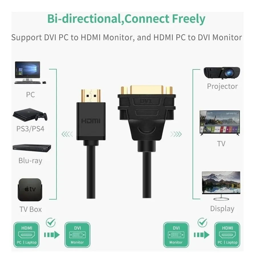 • Permite conectar dispositivos con salida HDMI a monitores o proyectores con entrada DVI