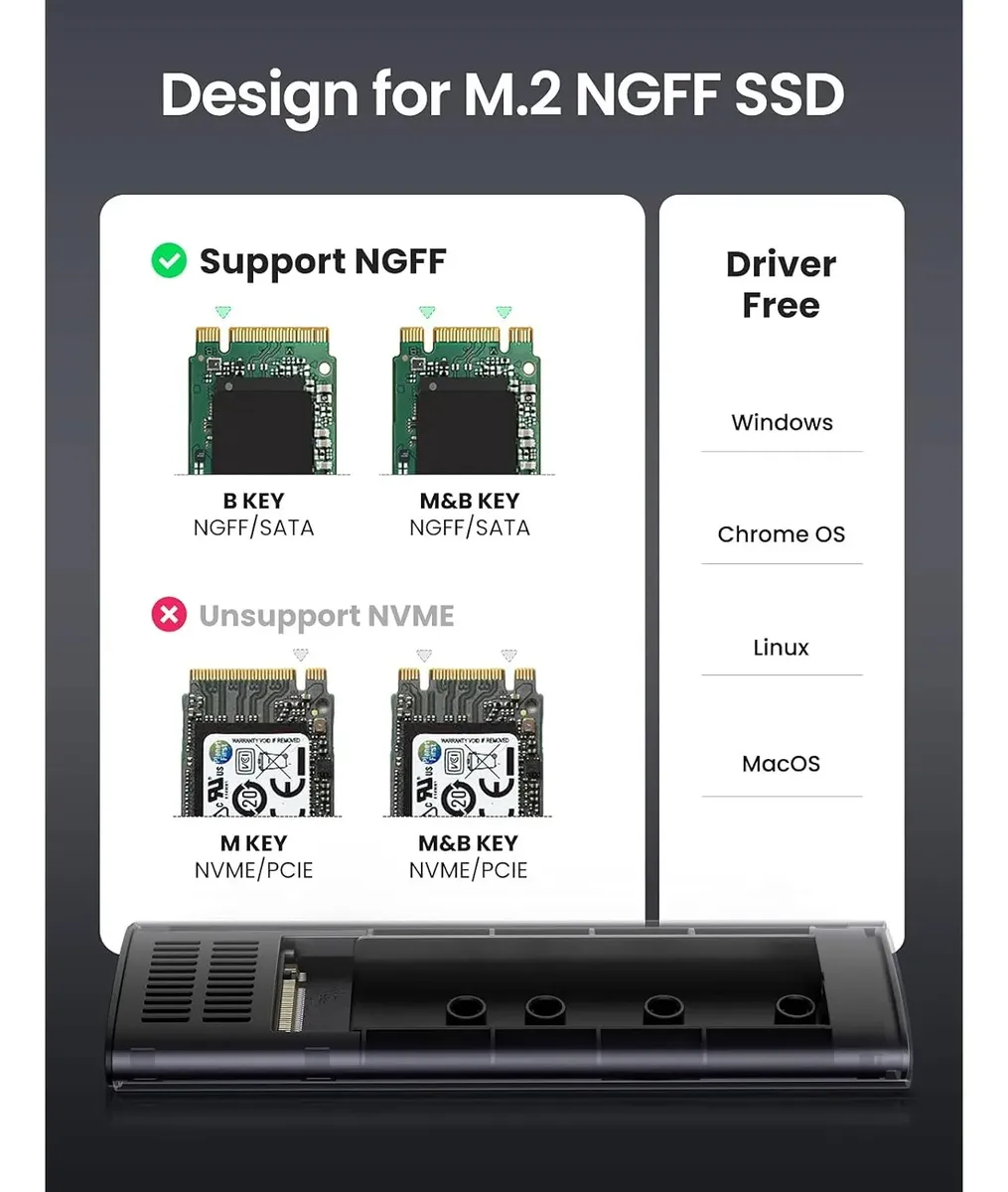 • Case externo para SSD M.2 NGFF (SATA) que convierte tu disco en portátil