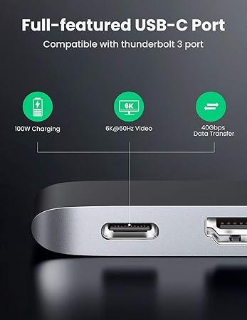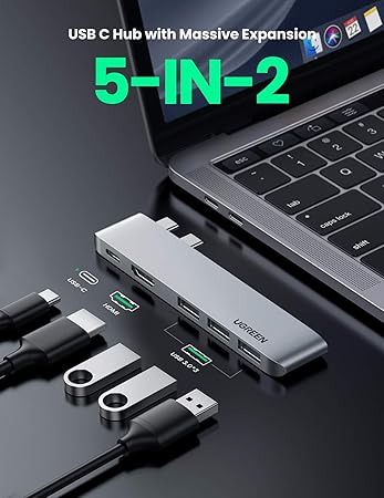 CONVERSOR TIPO C A HDMI 4K @30HZ-USBX3 3.0-USB C 5 EN 2 PARA MACBOOK UGREEN