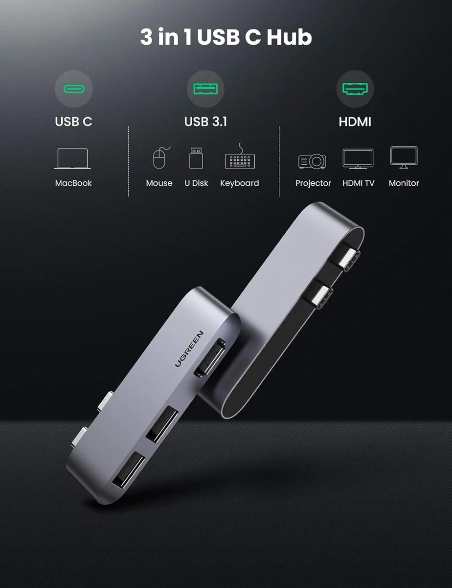 CONVERSOR TIPO C A HDMI 4K @60HZ-USBX2 3.1-5 EN 1 UGREEN