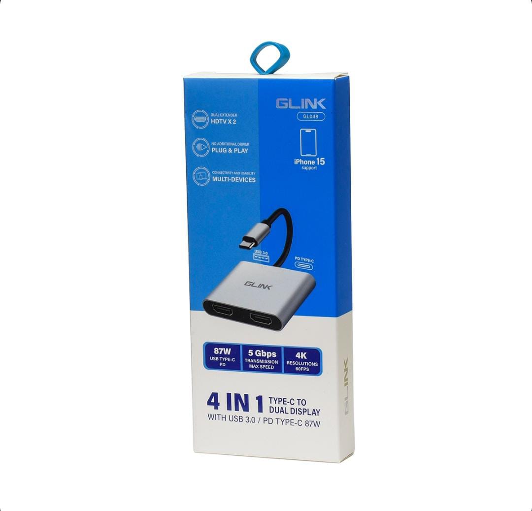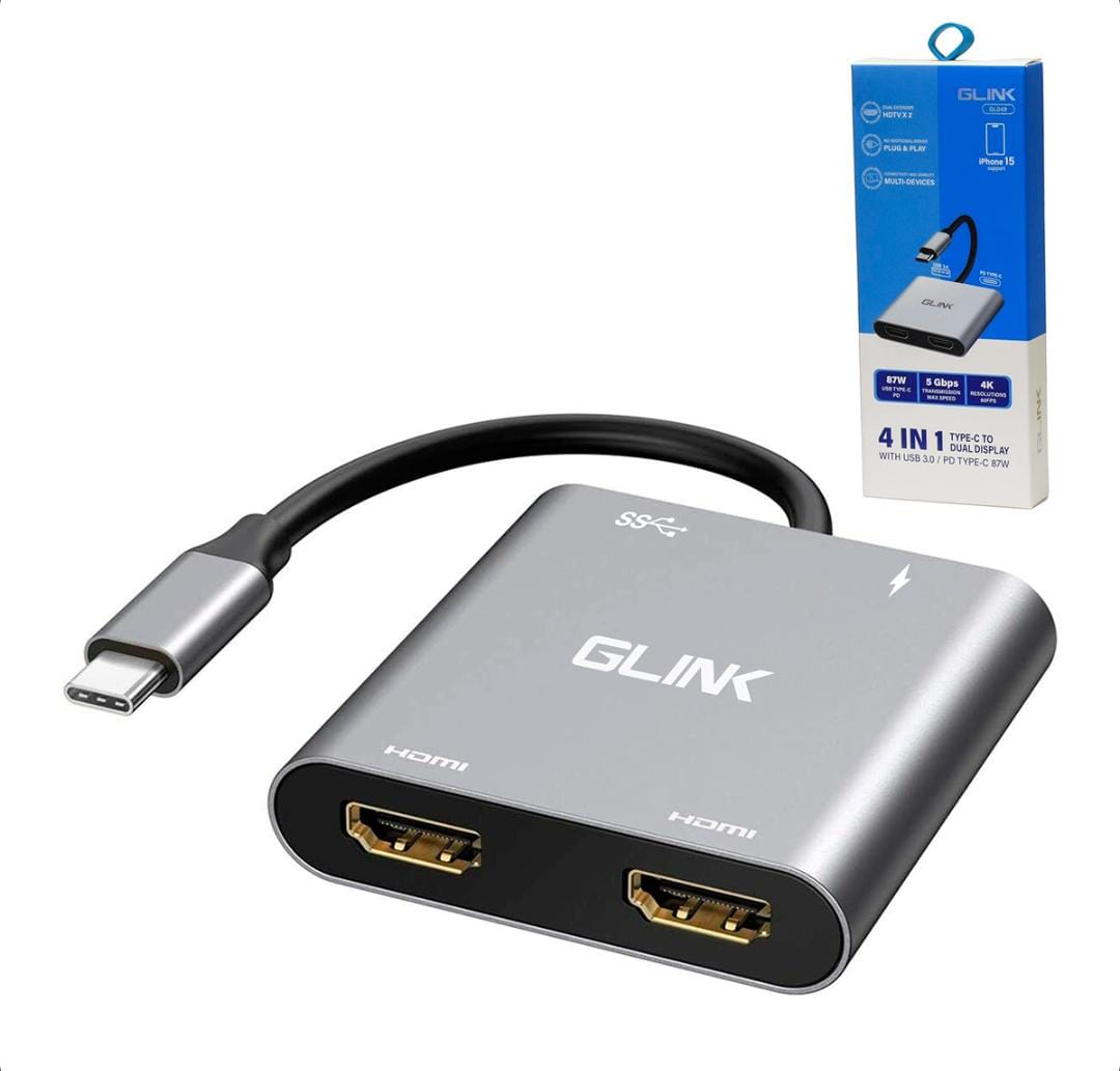 ADAPTADOR TIPO C A 2 HDMI + 2 USB 3.0V +PD TIPO C 87W GLINK