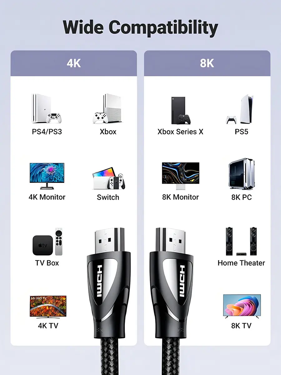 • Soporta resolución hasta 8K@60Hz y 4K@120Hz para máxima calidad de imagen