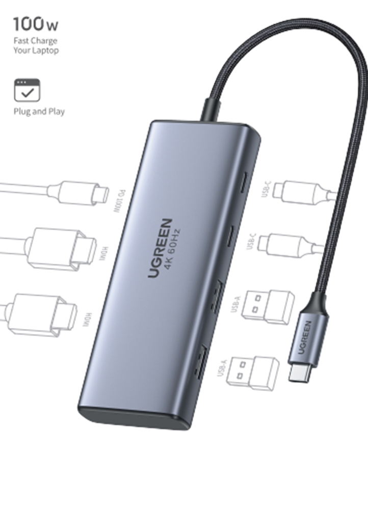 ADAPTADOR HUB USB-C UGREEN 7 EN 1/2X USB-C/ 2X USB-A/ 2X HDMI/ 1X PD 100W MOD.45379