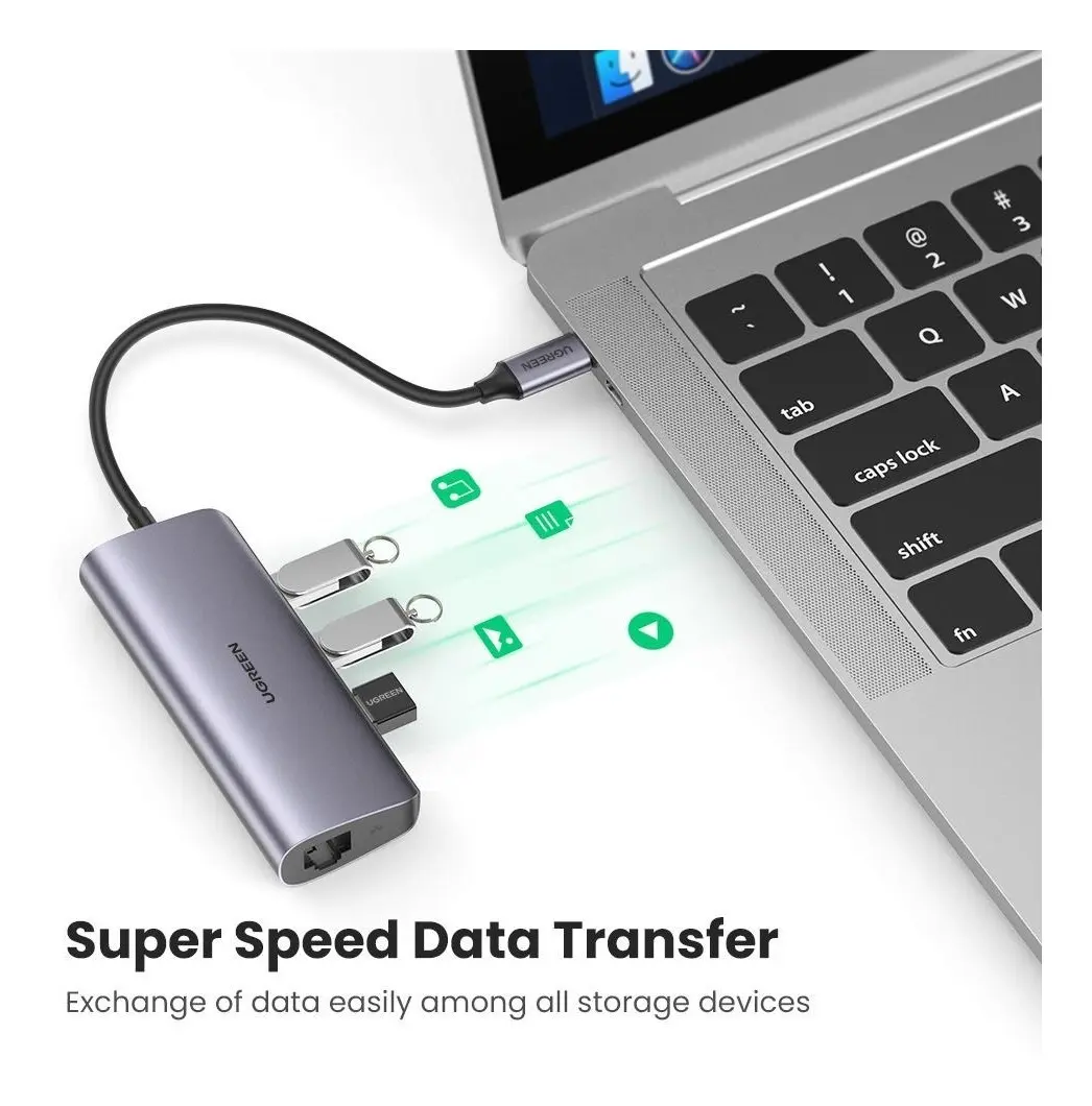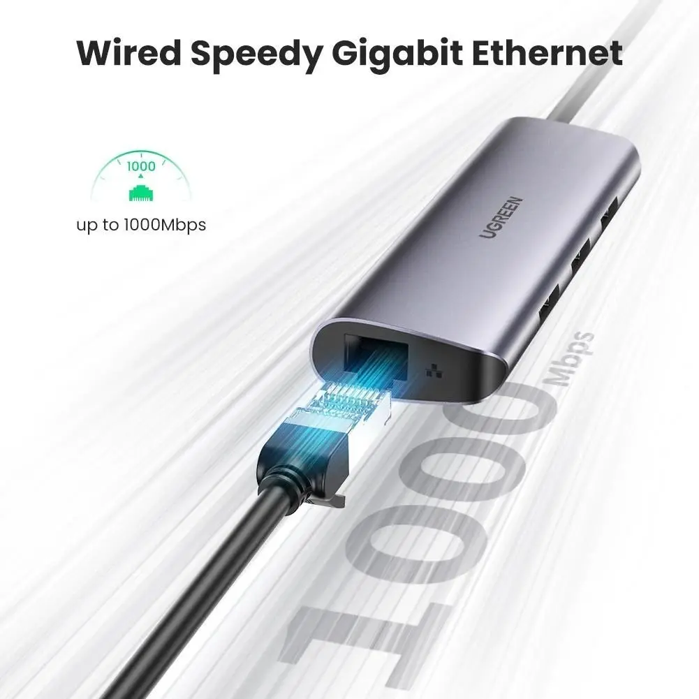 CONVERSOR TIPO C A RJ45 + 3 P/USB 3.0 UGREEN