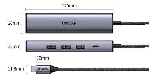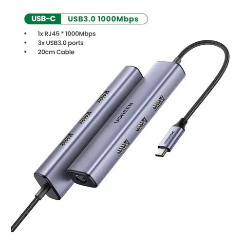 CONVERSOR TIPO C A RJ45 GIGABIT /USB 3.0 X3/TIPO C 5 EN 1 UGREEN