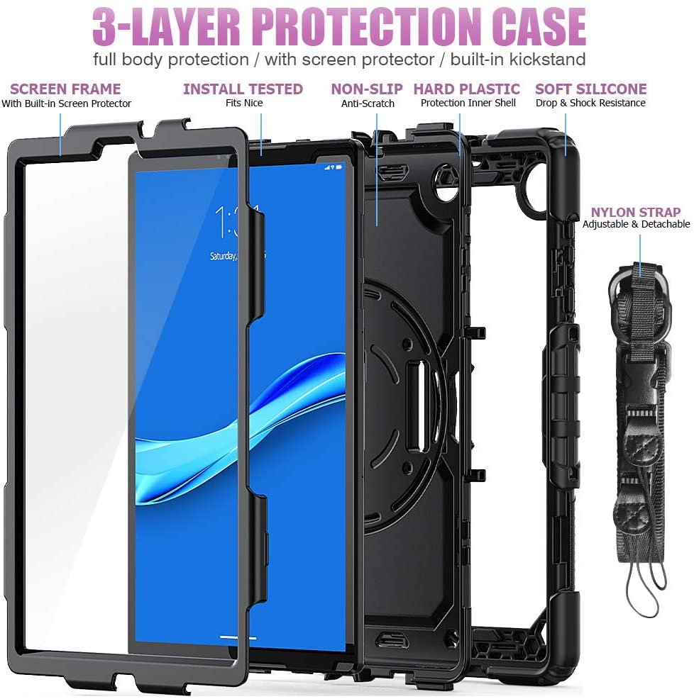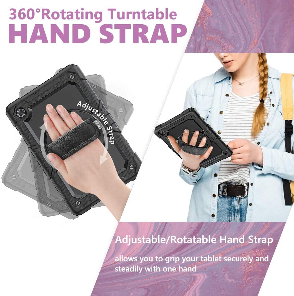 • El soporte giratorio de 360 grados ofrece una posición óptima para escribir o ver; el mango trasero ergonómico y cómodo te permite agarrar tu tableta de forma segura y constante con una mano, sin preocupaciones de que se caiga