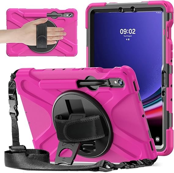 El soporte giratorio de 360 grados ofrece una posición óptima para escribir o ver; el mango trasero ergonómico y cómodo te permite agarrar tu tableta de forma segura y constante con una mano, sin preocupaciones de que se caiga