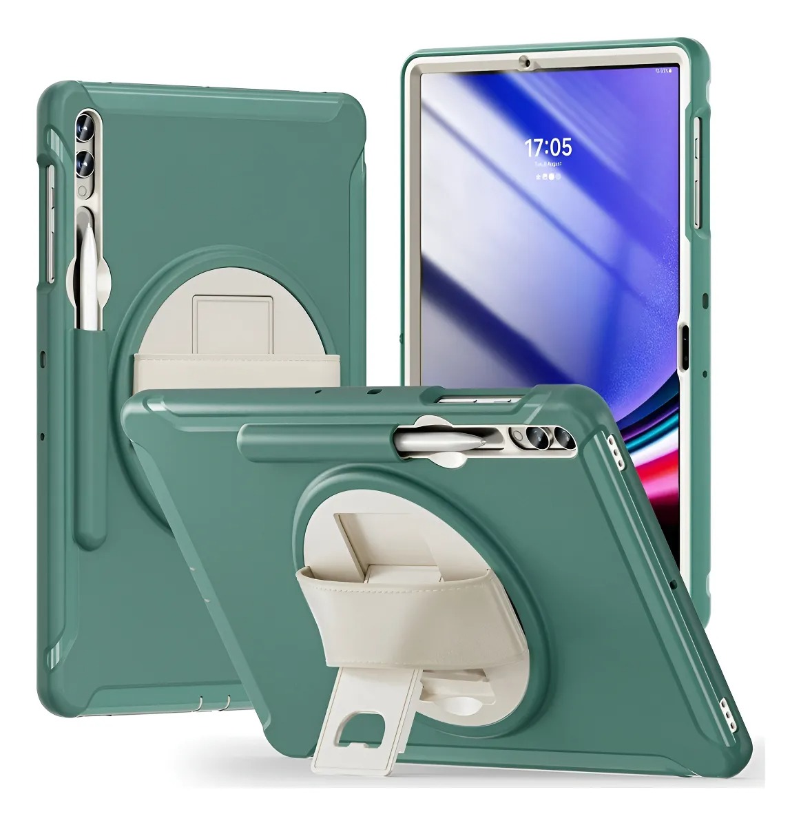El soporte giratorio de 360 grados ofrece una posición óptima para escribir o ver; el mango trasero ergonómico y cómodo te permite agarrar tu tableta de forma segura y constante con una mano, sin preocupaciones de que se caiga