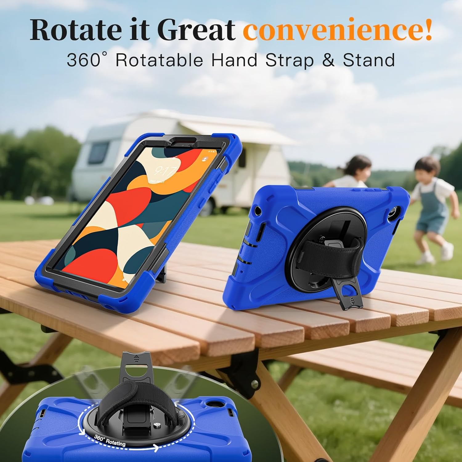 El soporte giratorio de 360 grados ofrece una posición óptima para escribir o ver; el mango trasero ergonómico y cómodo te permite agarrar tu tableta de forma segura y constante con una mano, sin preocupaciones de que se caiga