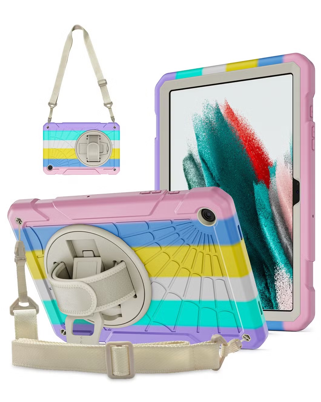 El soporte giratorio de 360 grados ofrece una posición óptima para escribir o ver; el mango trasero ergonómico y cómodo te permite agarrar tu tableta de forma segura y constante con una mano, sin preocupaciones de que se caiga