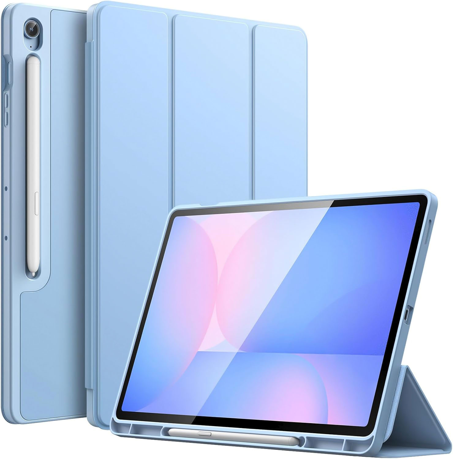 la funda trae una ranura para el lapiz, que es beneficioso al momento de transportar todo en una sola funda