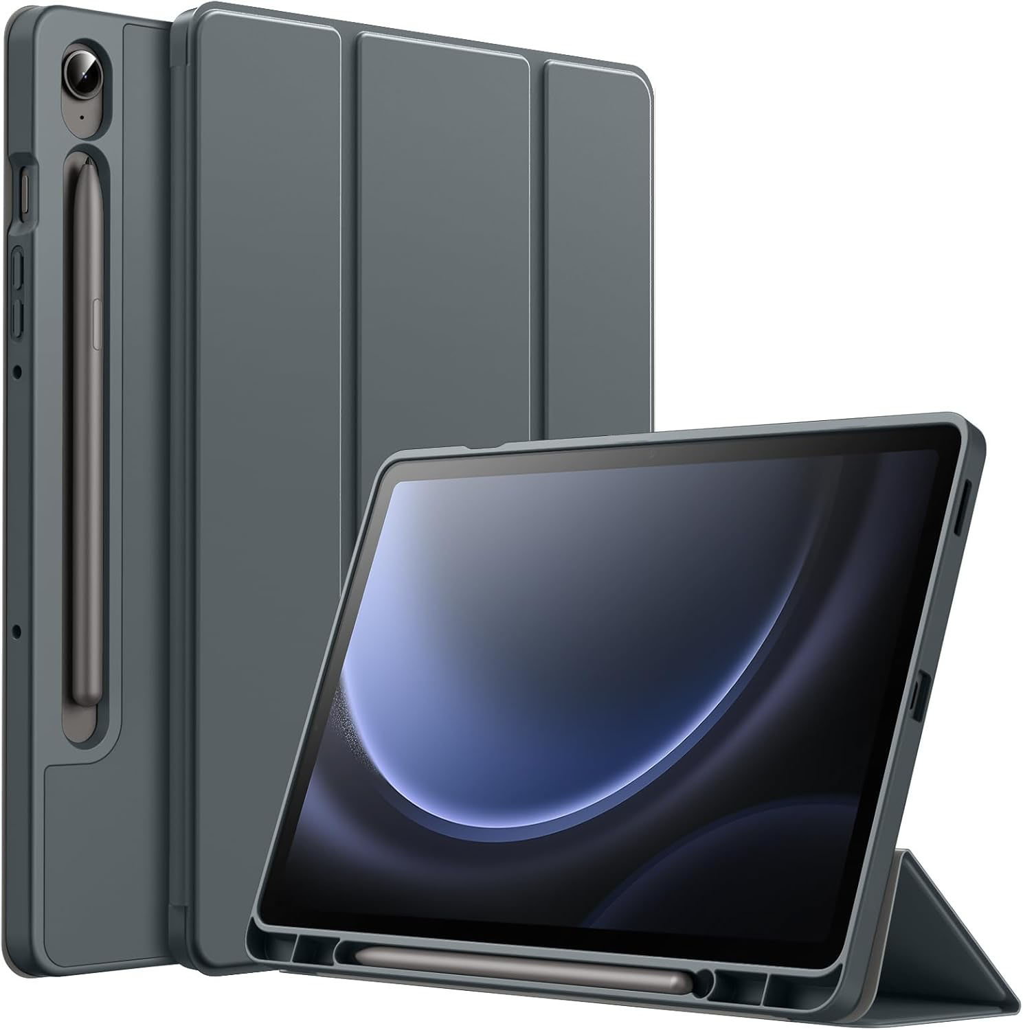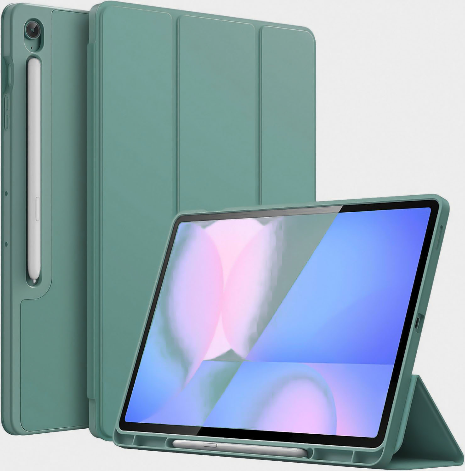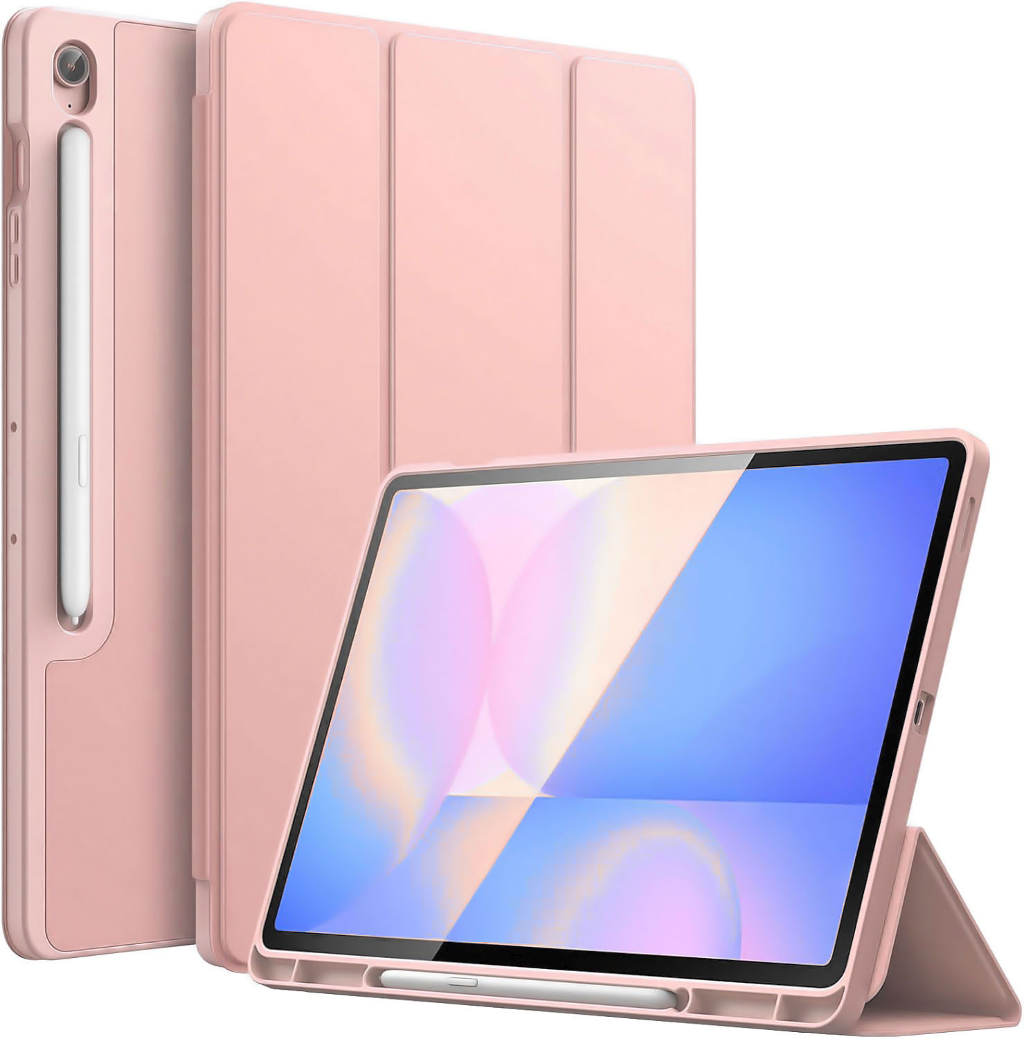 La tapa tiene varios propósitos: para proteger la pantalla del dispositivo y trabajar como un soporte plegable, mientras que el dispositivo está siendo utilizado para escribir, leer o ver videos.