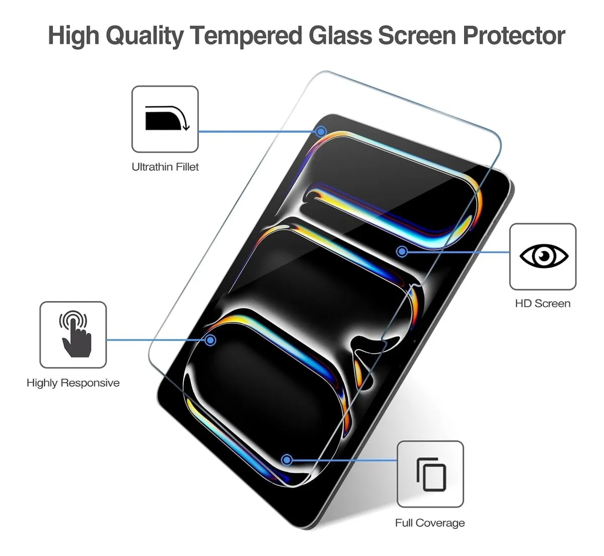 Sensibilidad táctil real: película ultrafina (0,33 mm de grosor) con transparencia Super HD y bordes redondeados, que mantiene el perfil delgado de la tableta y la calidad de visualización original, y garantiza una respuesta táctil fluida para una experiencia de usuario perfecta.