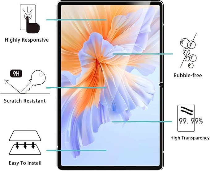 Sensibilidad táctil real: película ultrafina (0,33 mm de grosor) con transparencia Super HD y bordes redondeados, que mantiene el perfil delgado de la tableta y la calidad de visualización original, y garantiza una respuesta táctil fluida para una experiencia de usuario perfecta.
