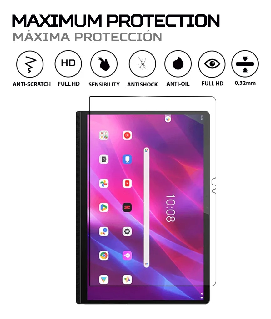 Sensibilidad táctil real: película ultrafina (0,33 mm de grosor) con transparencia Super HD y bordes redondeados, que mantiene el perfil delgado de la tableta y la calidad de visualización original, y garantiza una respuesta táctil fluida para una experiencia de usuario perfecta.