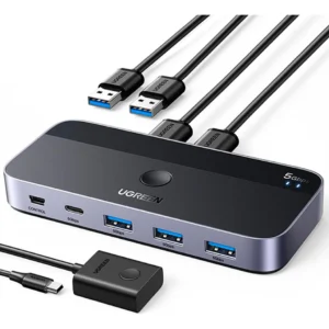 SWITCH CONMUTADOR KVM USB 3.0/2 ENTRADAS Y 4 SALIDAS, 2 PC COMPARTEN 4 DISPOSITIVOS 3 USB-A /1 USB-C UGREEN
